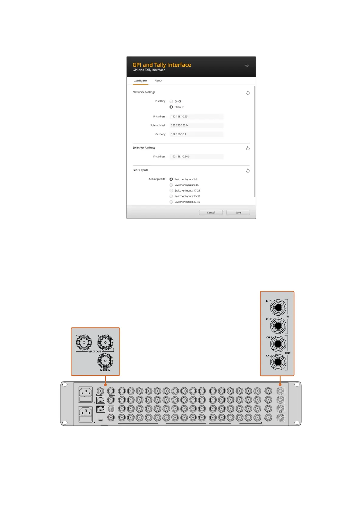 Network and Tally Settings for the GPI and Tally Interface