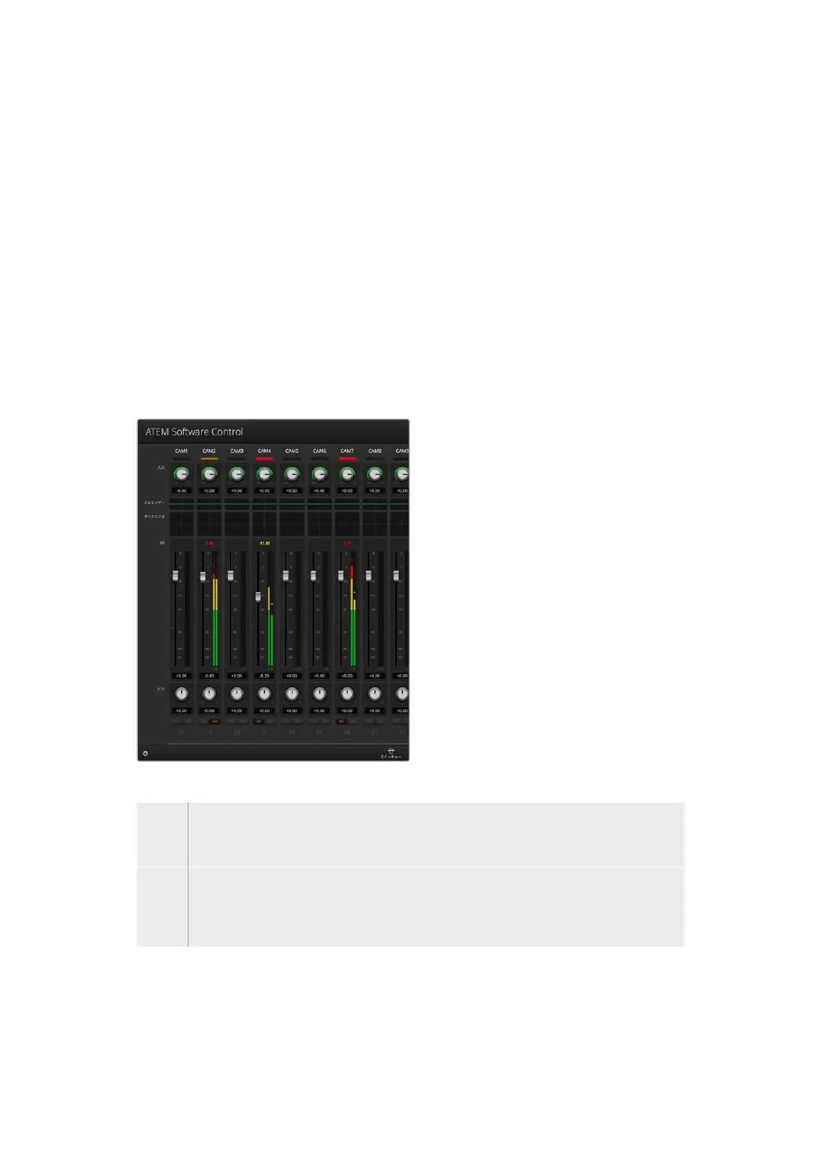 オーディオメーター上部の 数 値は 、各オーディオソースのピーク時 のオーディオレベルを示しています。
