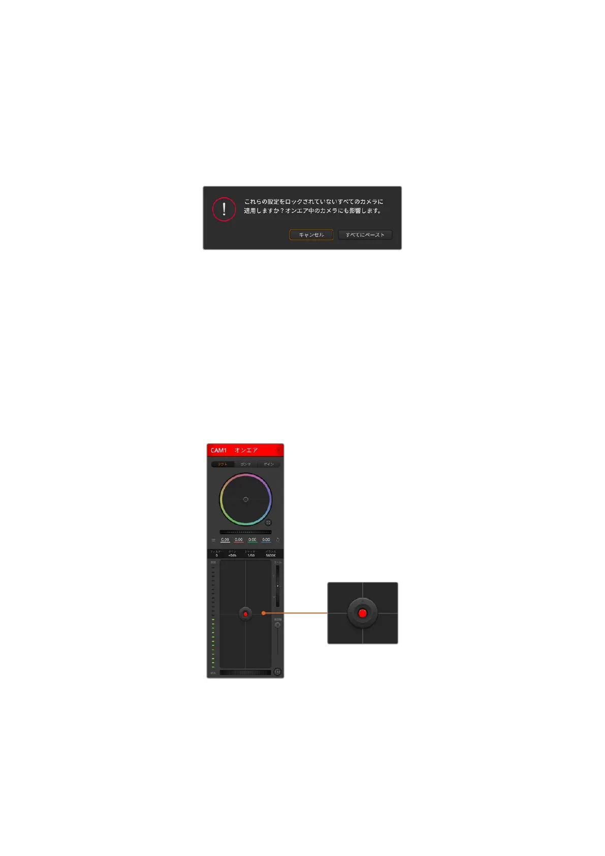 ます。この確認表示は、現在オンエア中でロックされていないカメラに、誤って新しい設定をペーストし