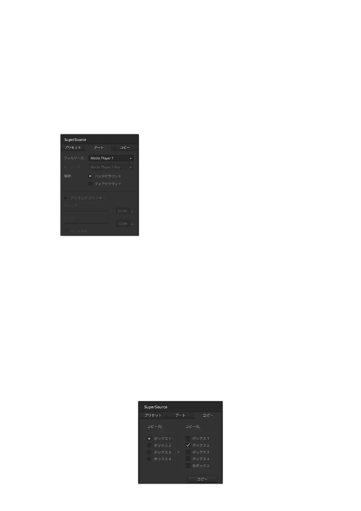 のボックスにコピーされま す。ATEM Software Controlと同様に、コピーされたボックスはマスターボッ