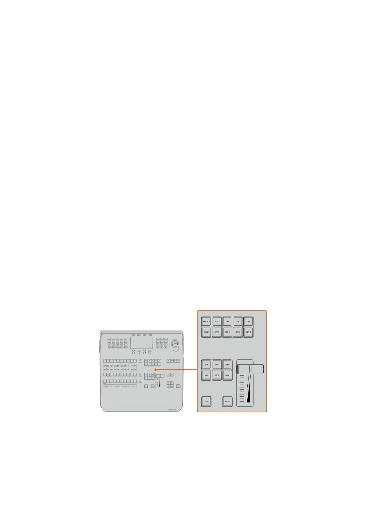 プレビューバス、選択バスのボタン、トランジションタイプのボタンの