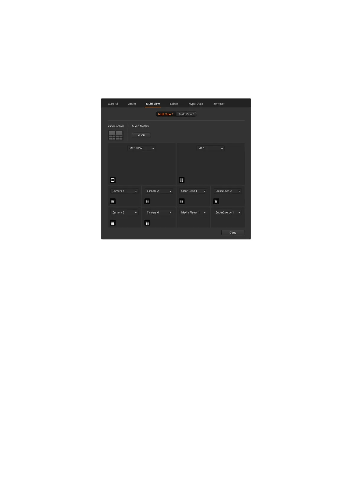 Audio meters can be turned on or off for all the switcher sources and program view by enabling
