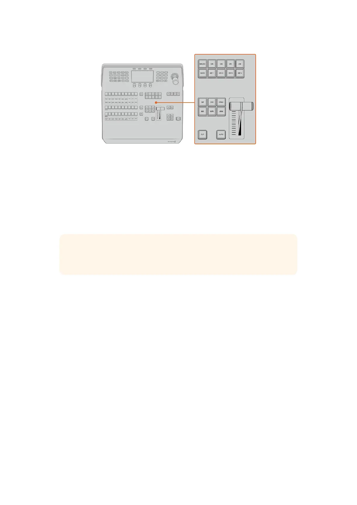 ダウンストリームキーヤーがメインのトランジションに連 結されているため、トランジションは LCDの「