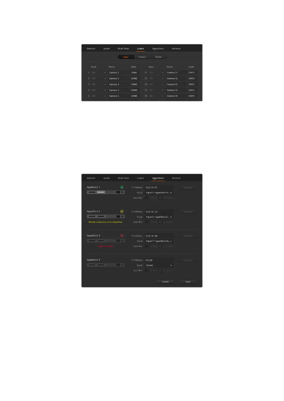 Software Control. When connecting HyperDecks, use these settings to configure the IP