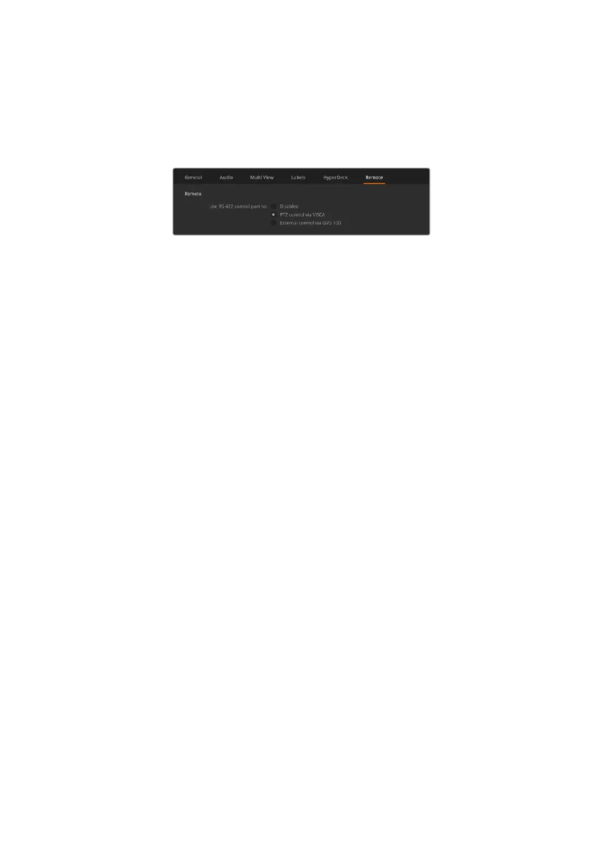you can select how it is used with the ‘remote’ checkbox. The options are ‘disabled’, VISCA and