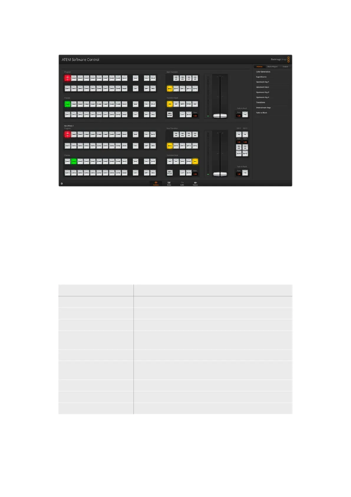More information on how to use the switcher control panel is included in the next sections.