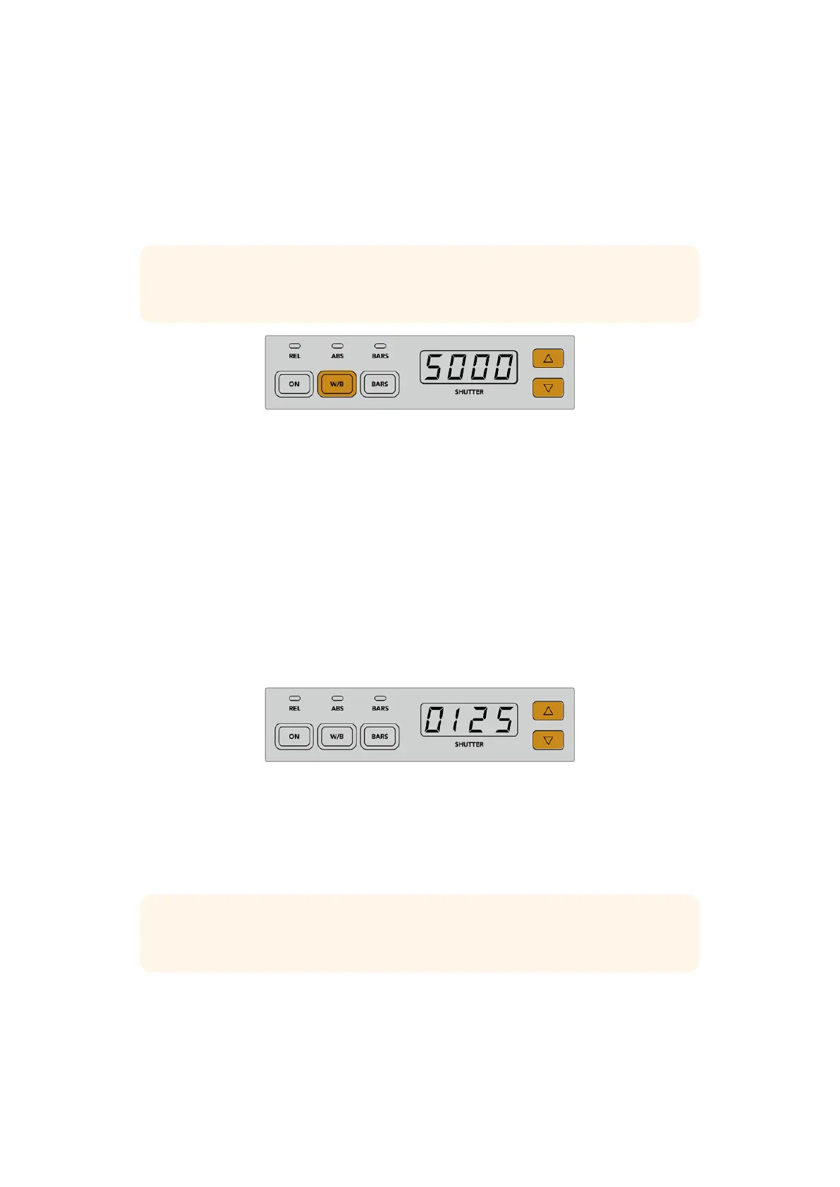 矢印を押すとシャッタースピードが上がり、下矢印を押すと下がります。一般的なプロダクションでは、