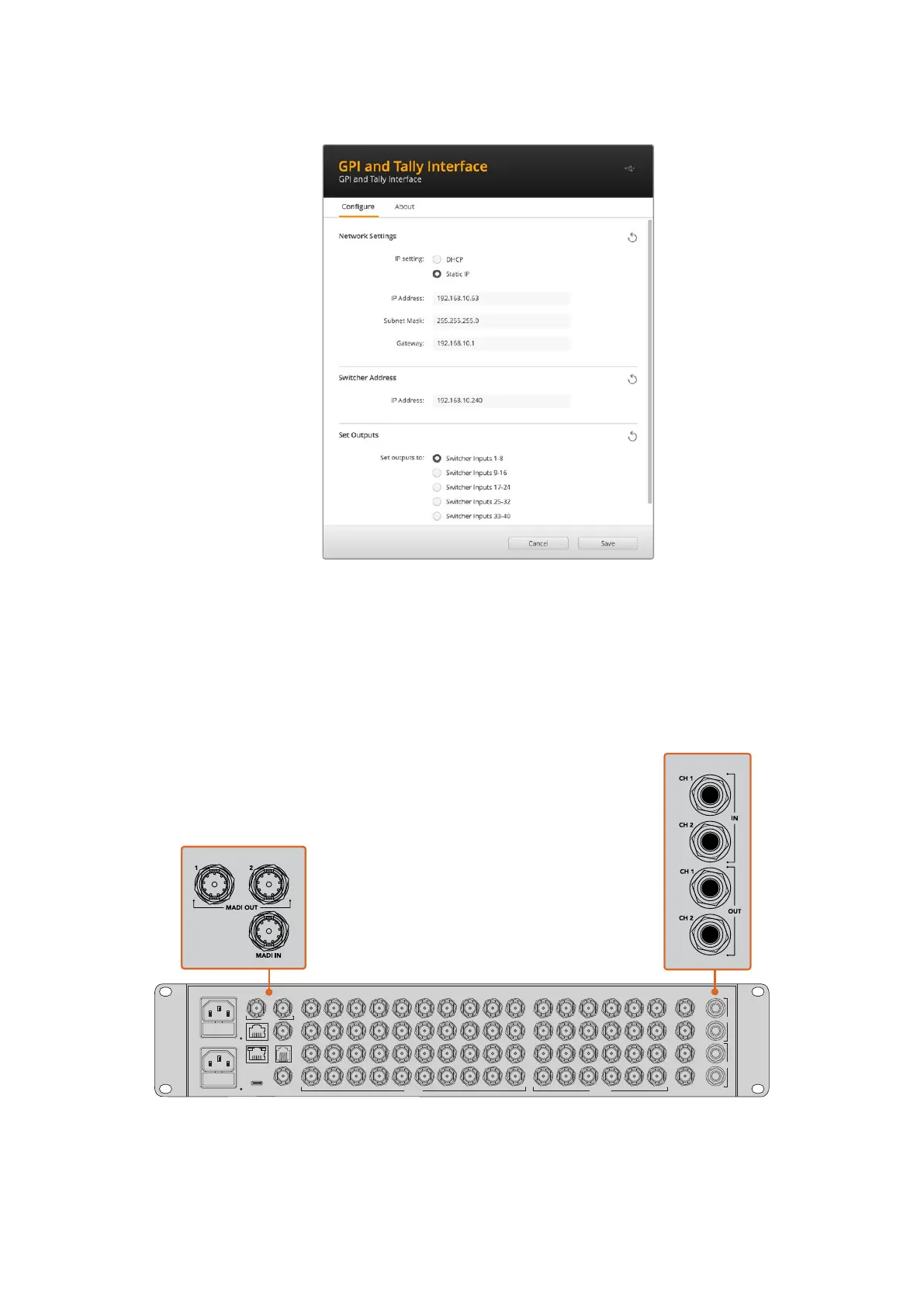 GPIandTallyInterfaceのネットワー ク/タリー 設 定