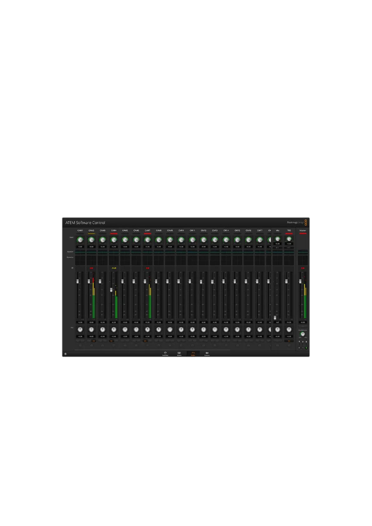 The audio tab is used to mix audio sources connected to the ATEM switcher via SDI, analog