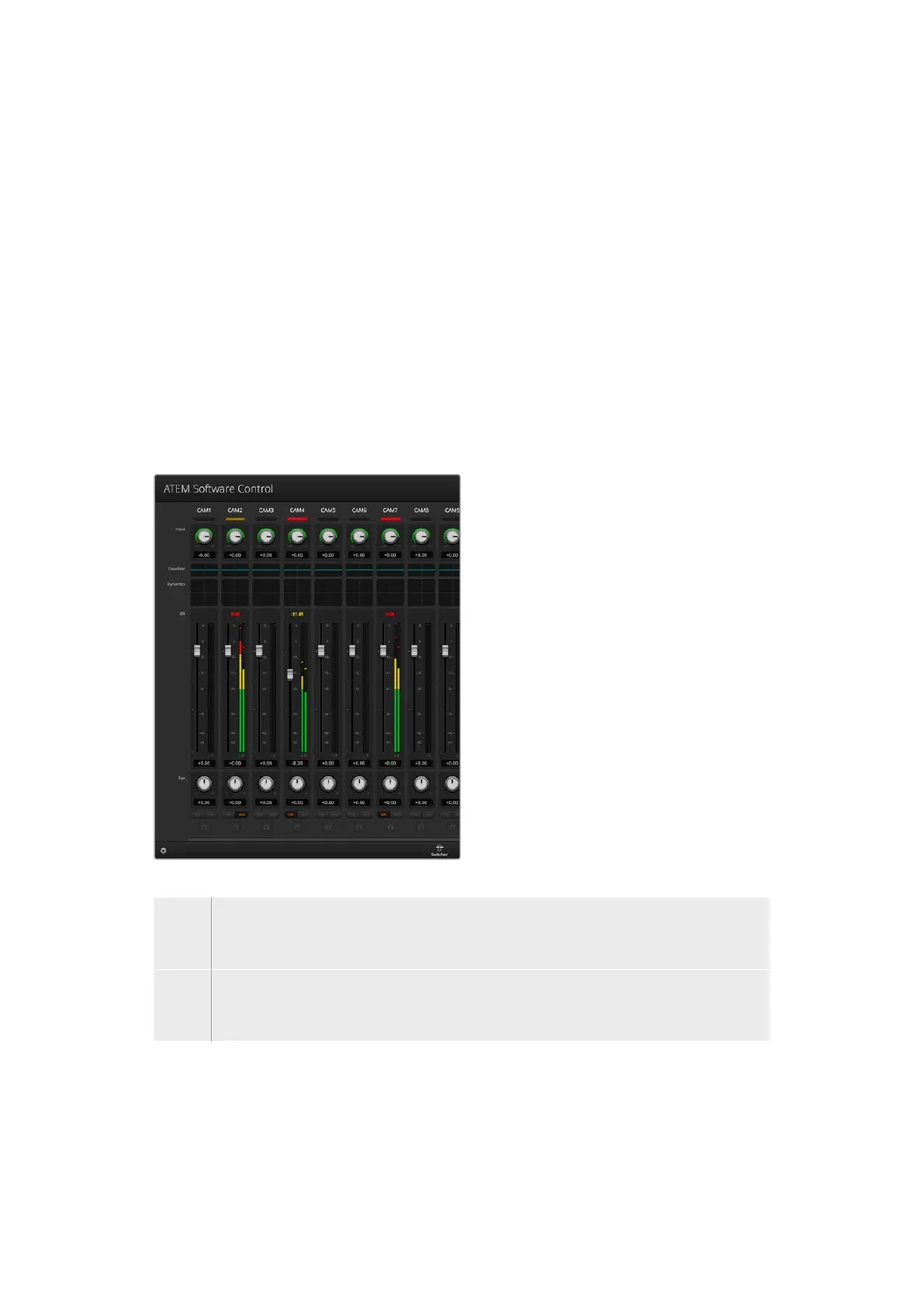 Below each audio level meter, you will find