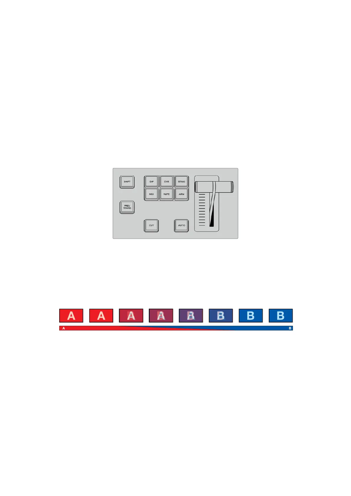 transitions by selecting the transition type and pressing the AUTO button. The previously used