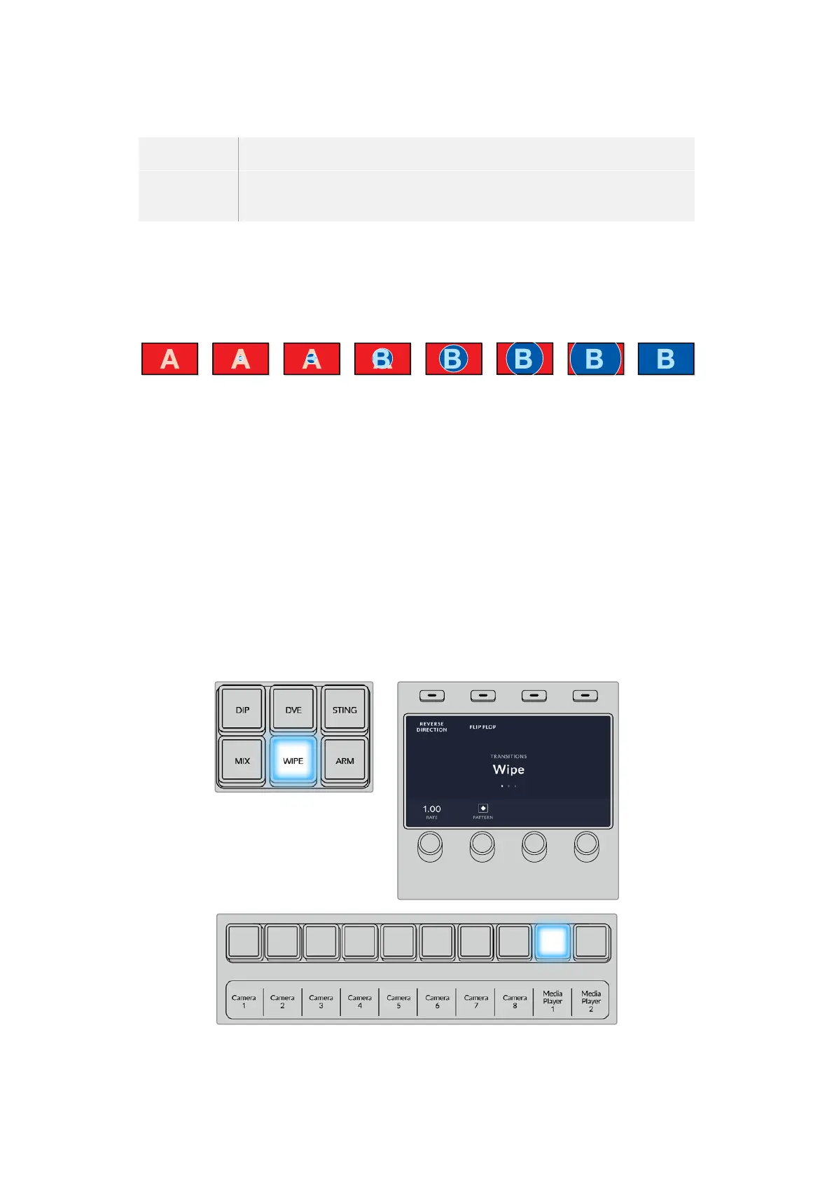 A wipe is a transition from one source to another and is achieved by replacing the current
