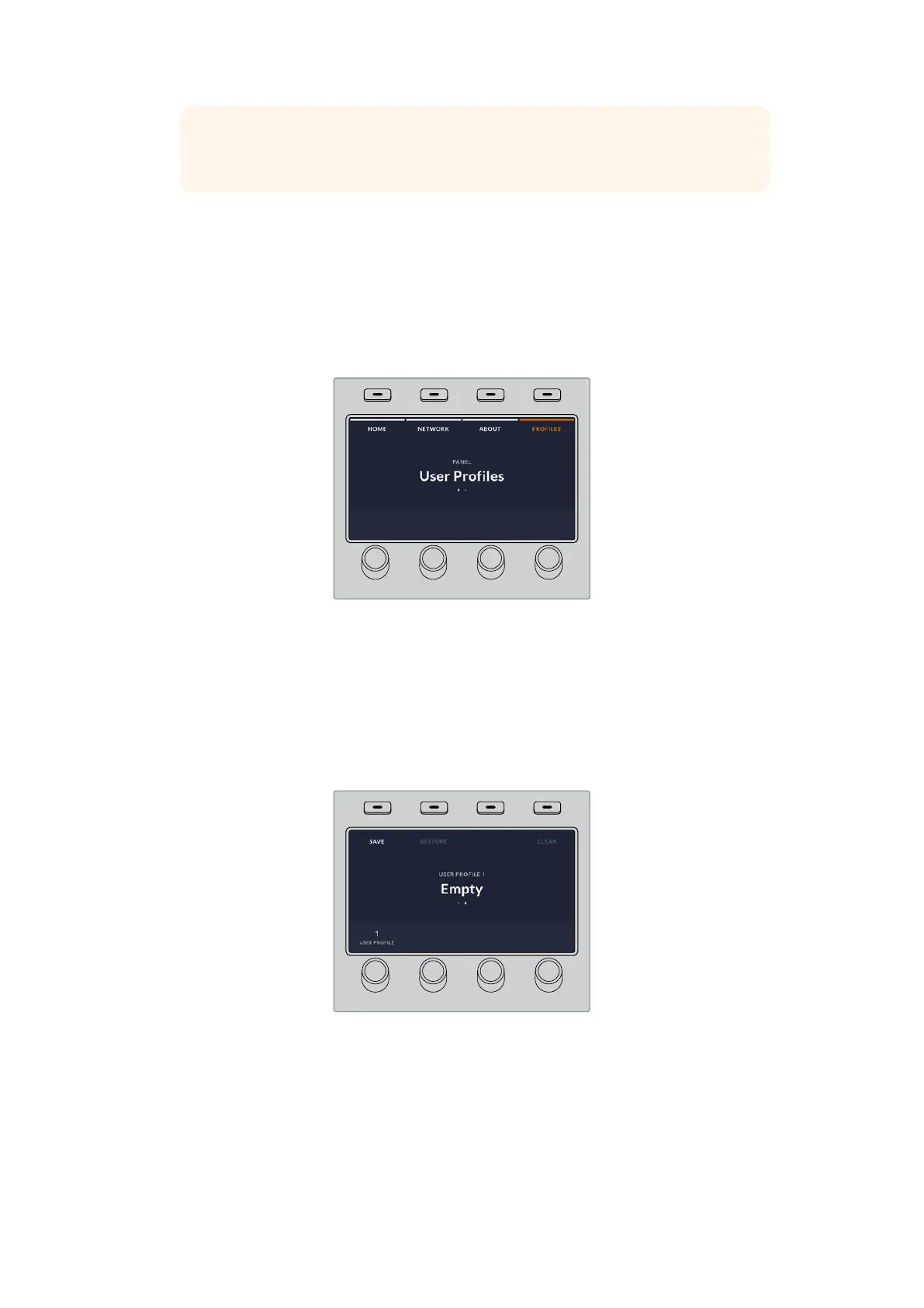1 Once you have set up the panel with all your preferred settings, press on the soft ‘profiles’