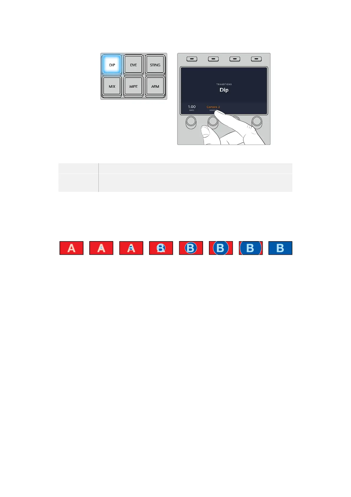 Dip Source The dip source is any video signal in the switcher that will be used as the