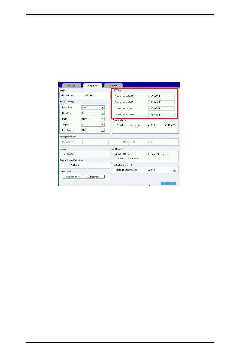 1. From the KE OSD, go to the Receiver Properties page, see Properties,
