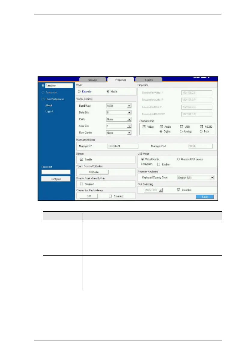 Properties If you selected Extender mode (above) set the Transmitter IP