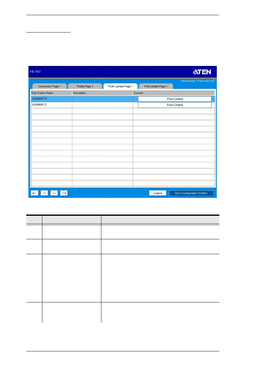 The Push Content Page components are described in the table, below: