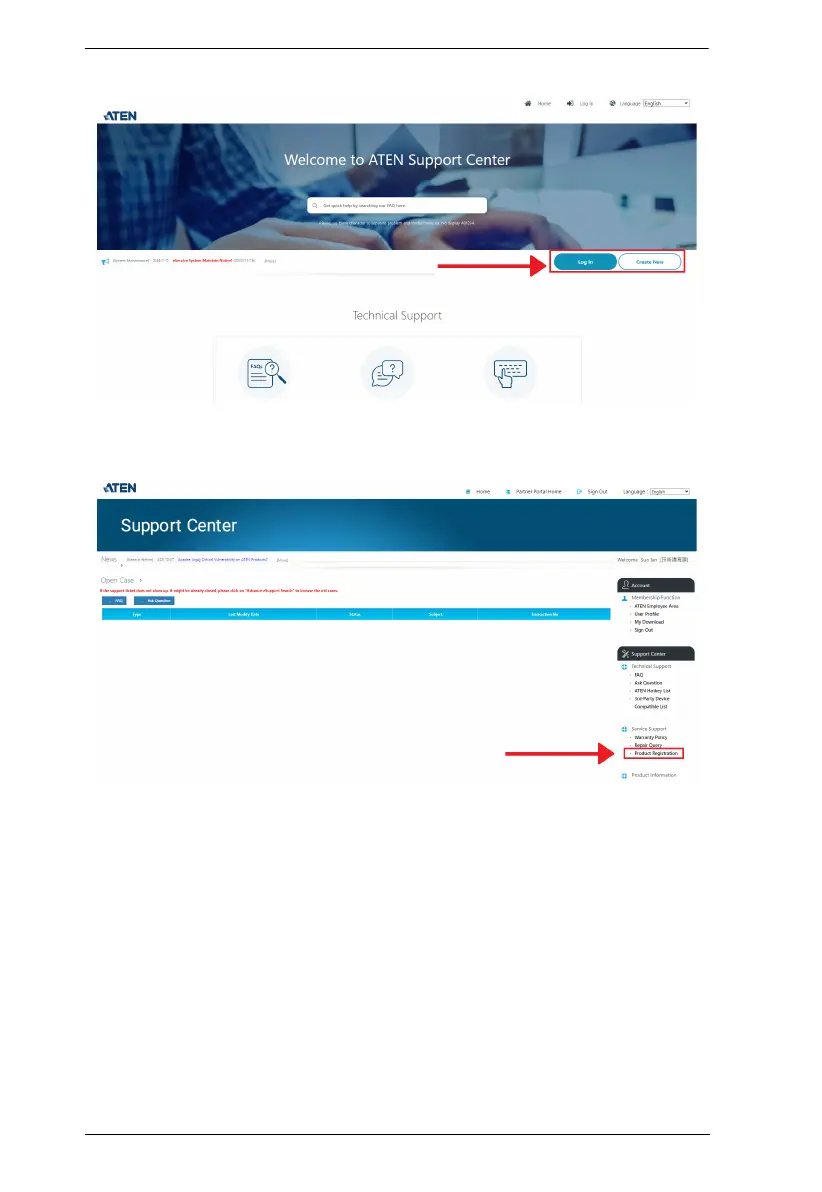 3. After logging in, click Product Registration to register the KE device(s)