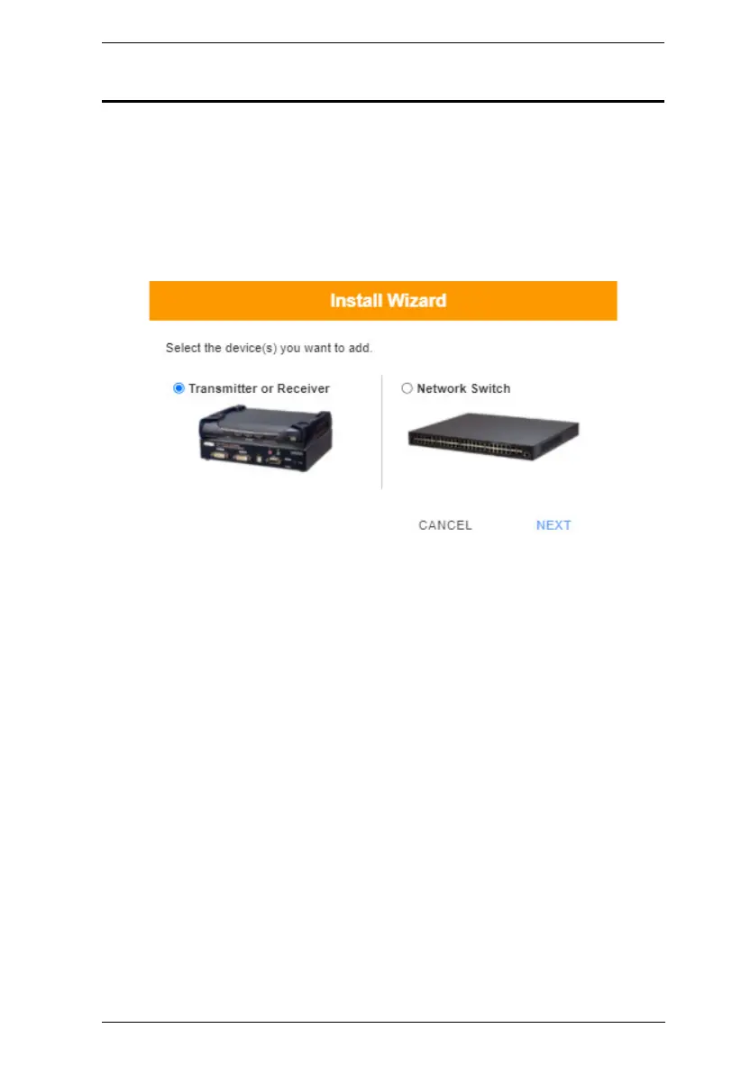 Use the Install Wizard to add transmitters, receivers, and/or network switches