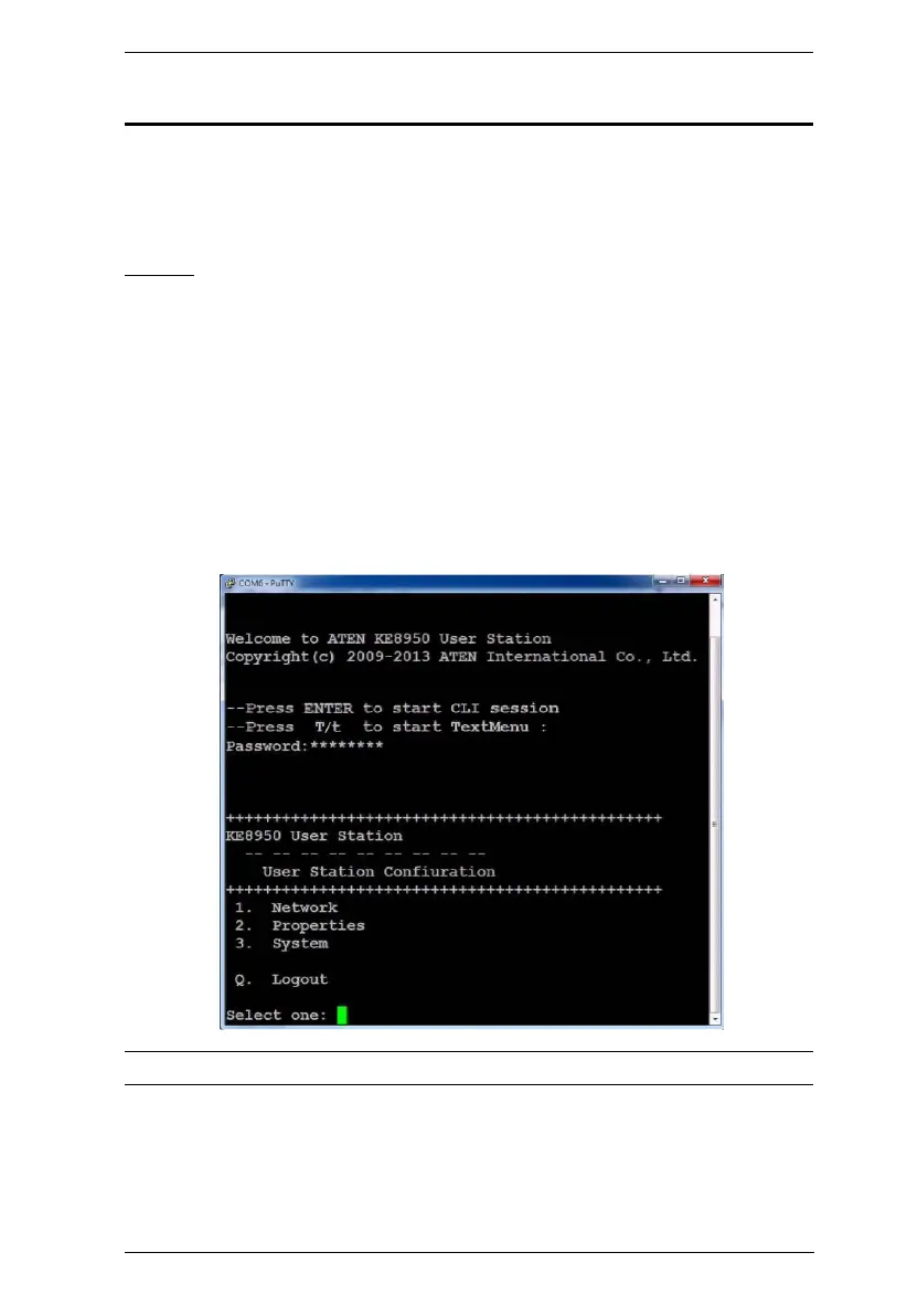 3. Please press “T / t” to start “TextMenu” The login screen appears. At the