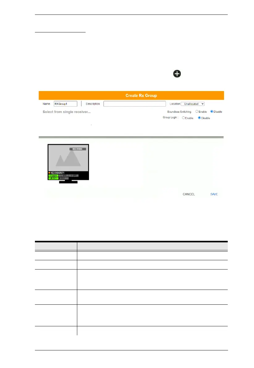 To create a Receiver Group, in Receiver settings, click and then select