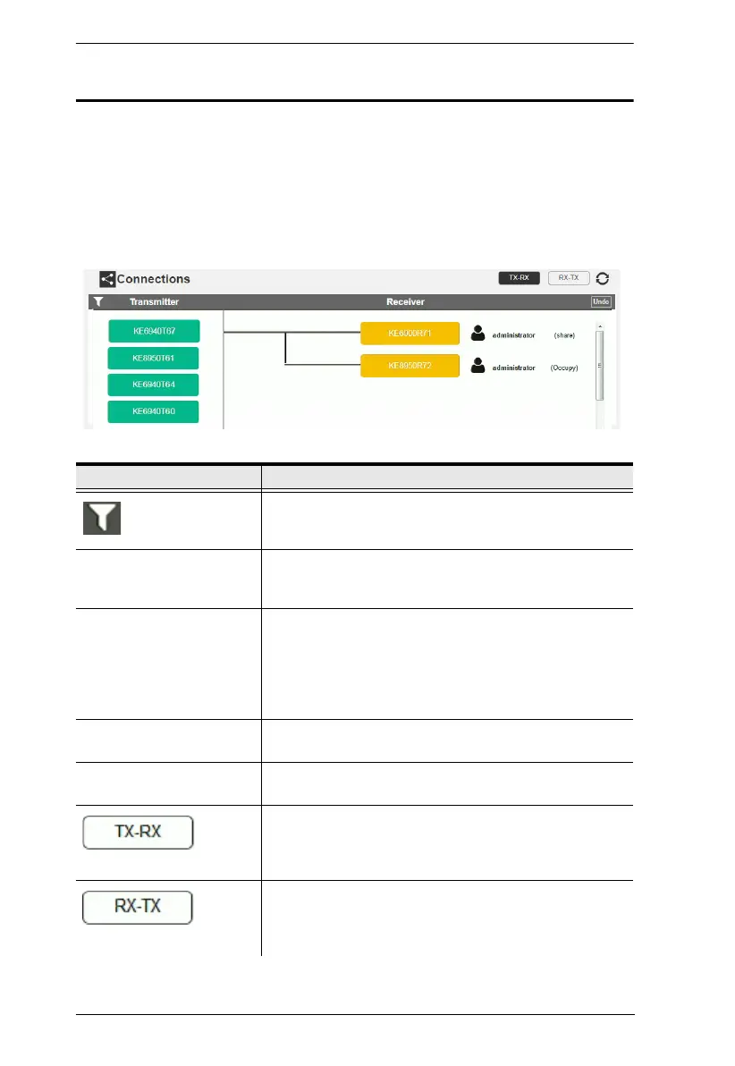 When Receivers connect to Transmitters, they appear in the Connections