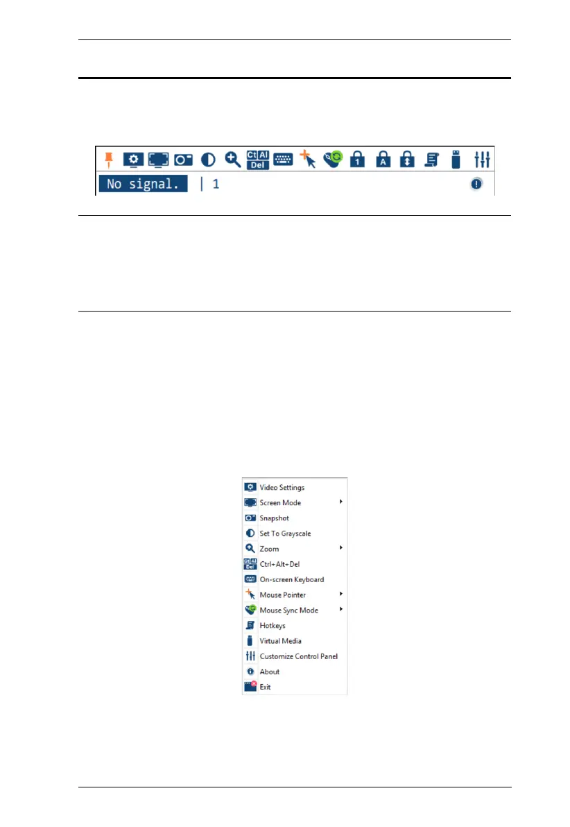 Note: 1. The above image shows the complete Control Panel. The icons that