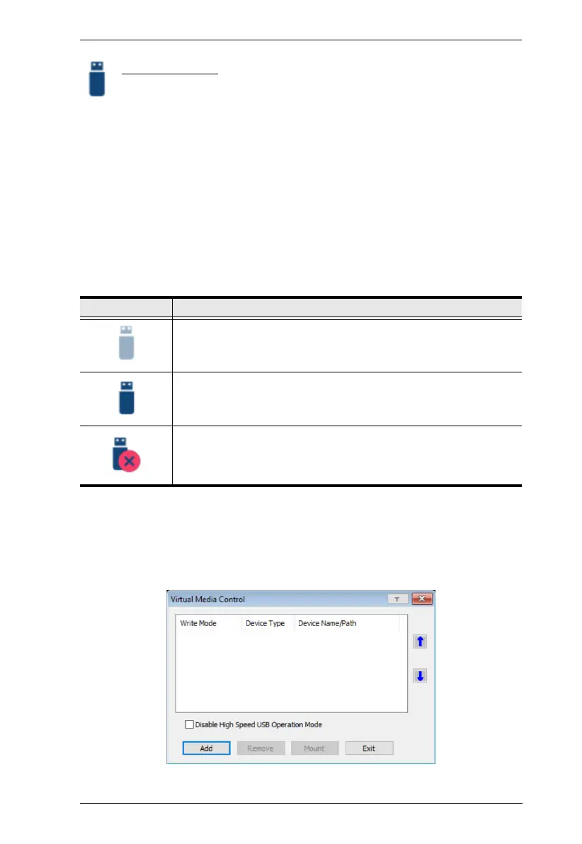 The Virtual Media icon on the Control Panel changes to indicate whether the