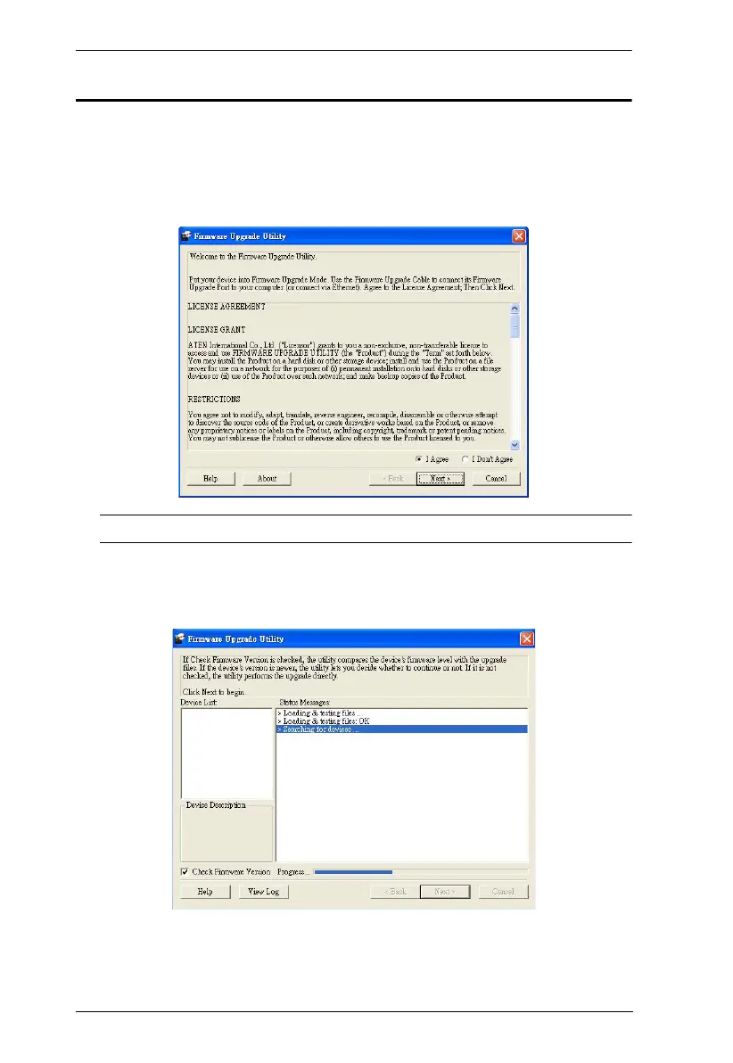 3. Click Next. The Firmware Upgrade Utility main screen appears: