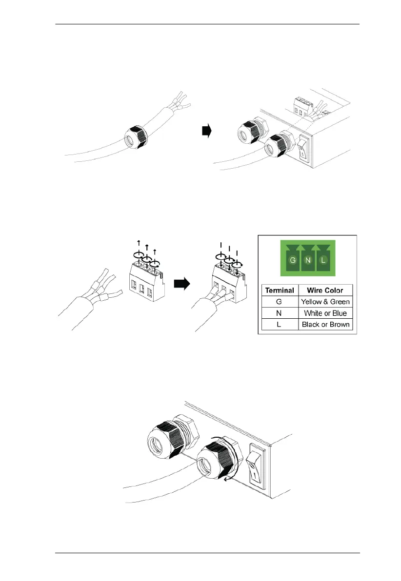 Tighten the screws on the top (to a torque of 0.5N.m) to secure the wires in