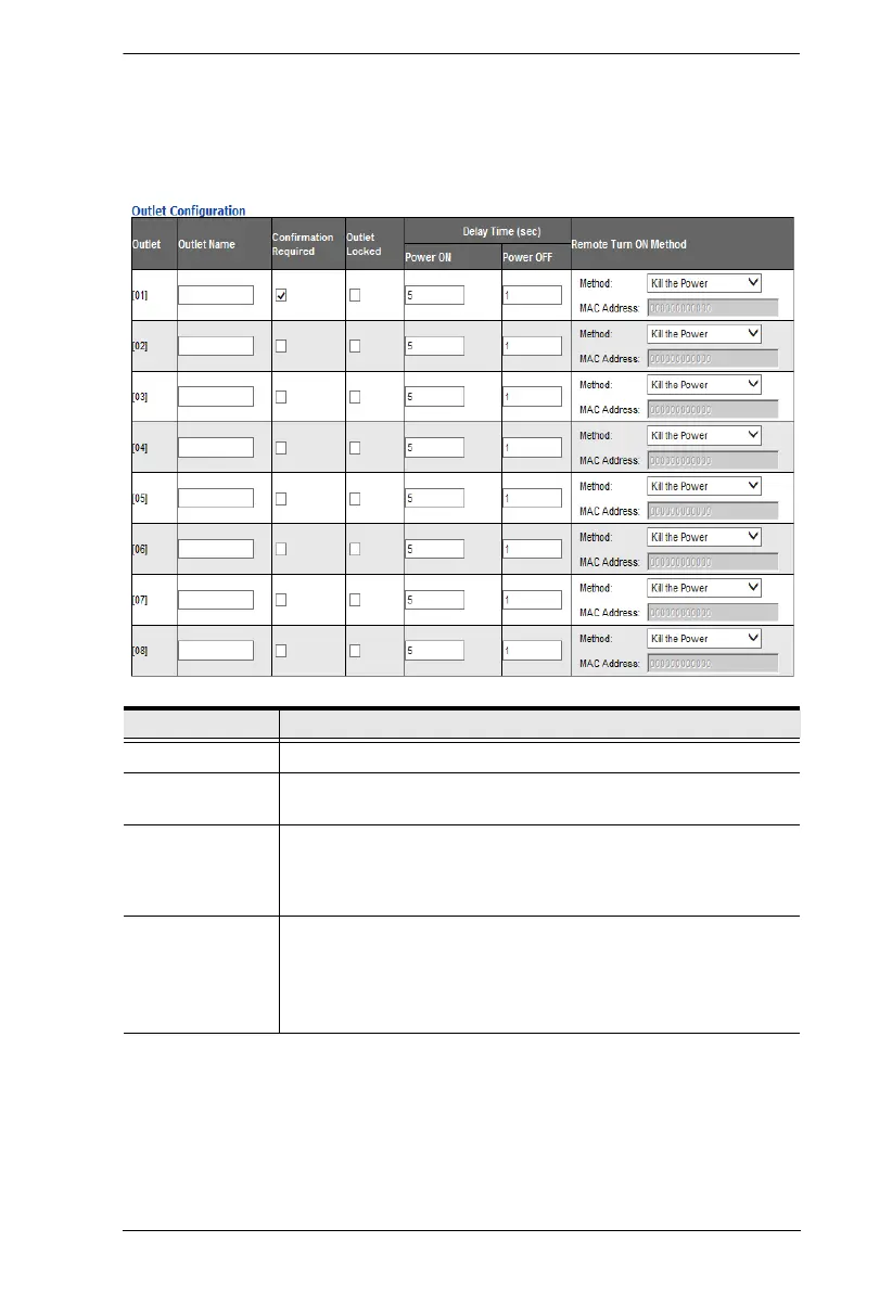 Outlet Locked Check this box to disable use of the front panel Power Control