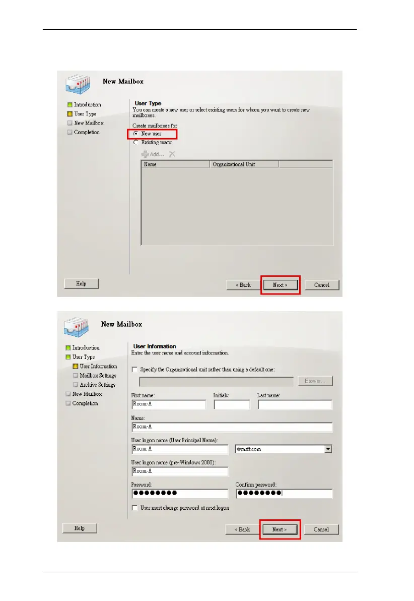 4. On the User Type page, click New User and then Next to fill out the