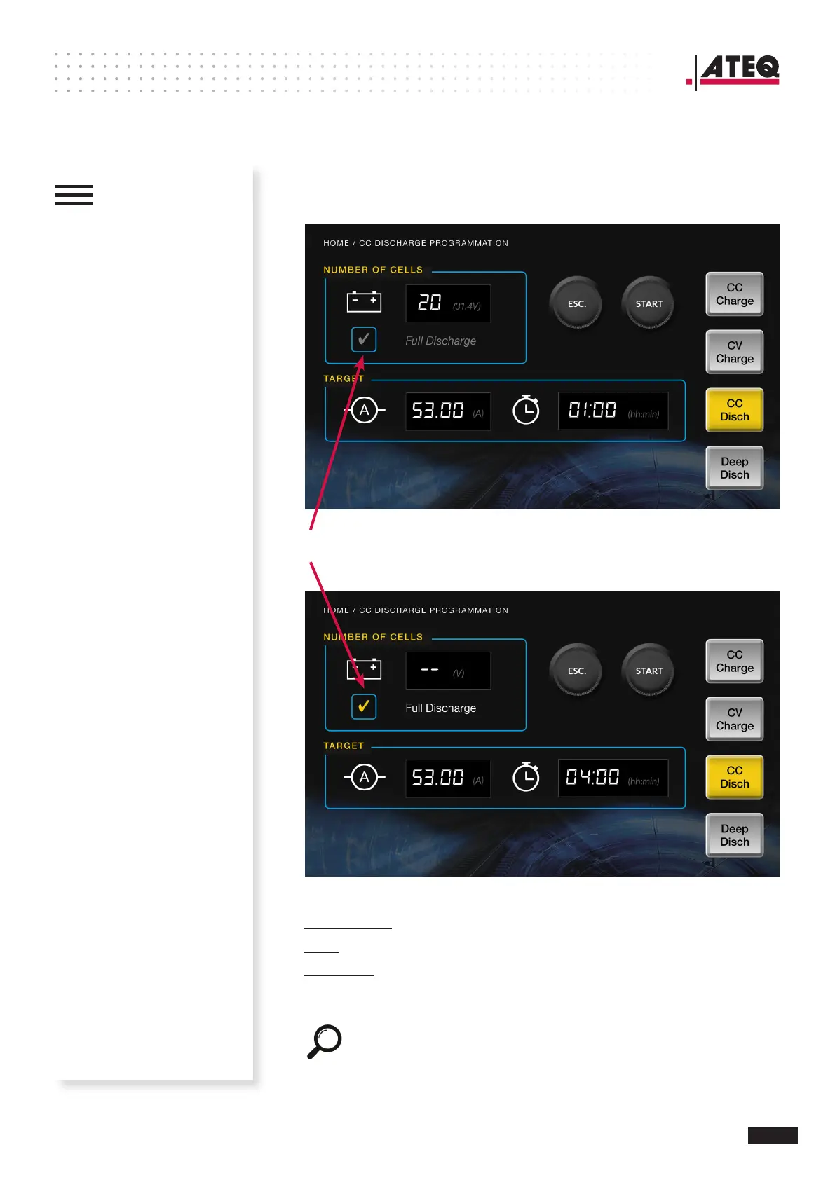 Note: Baery Voltage is ignored during “ Full Discharge “.