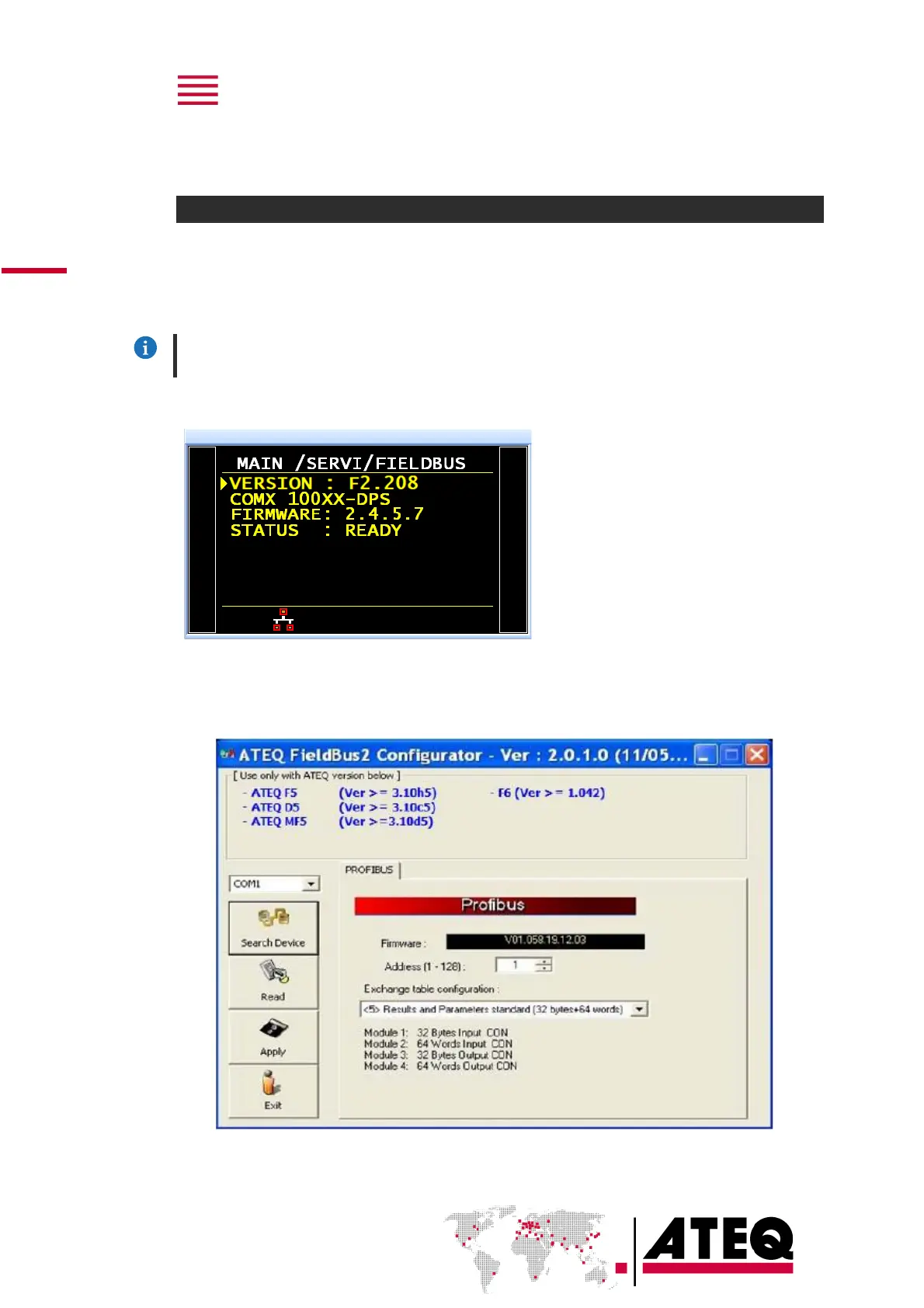 You can identify the hardware configuration using your ATEQ device or using a fieldbus configuration