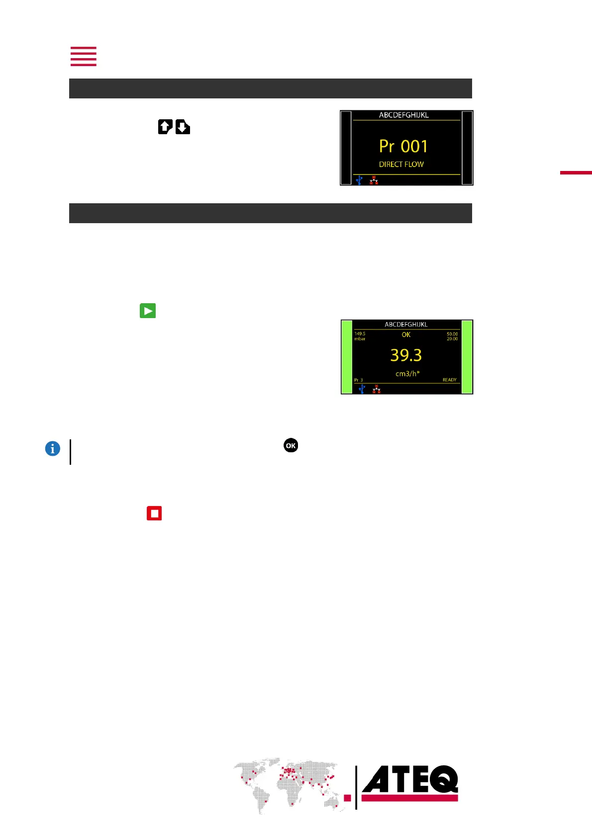 At the end of the cycle, the results are displayed and READY appears at the bottom right