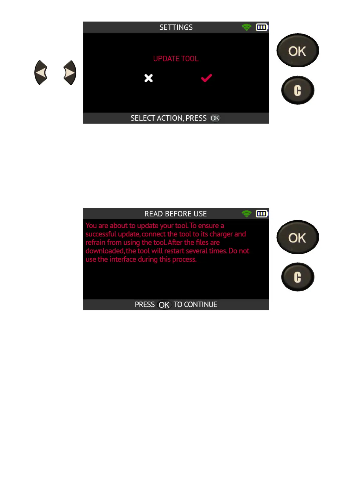 A WiFi update takes about 15-30 minutes, during which the tool will automatically restart