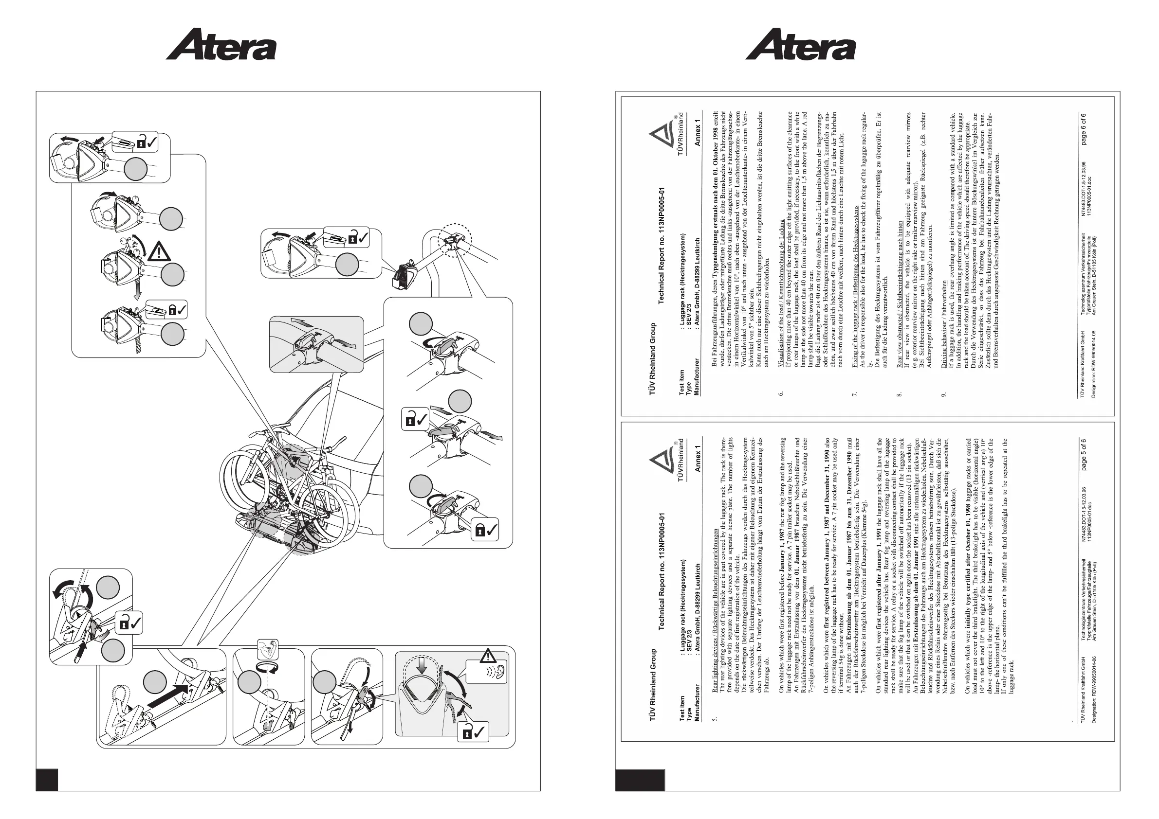 Atera STRADA EVO - Safety and Operational Notes; Rear Lighting and License Plate Requirements