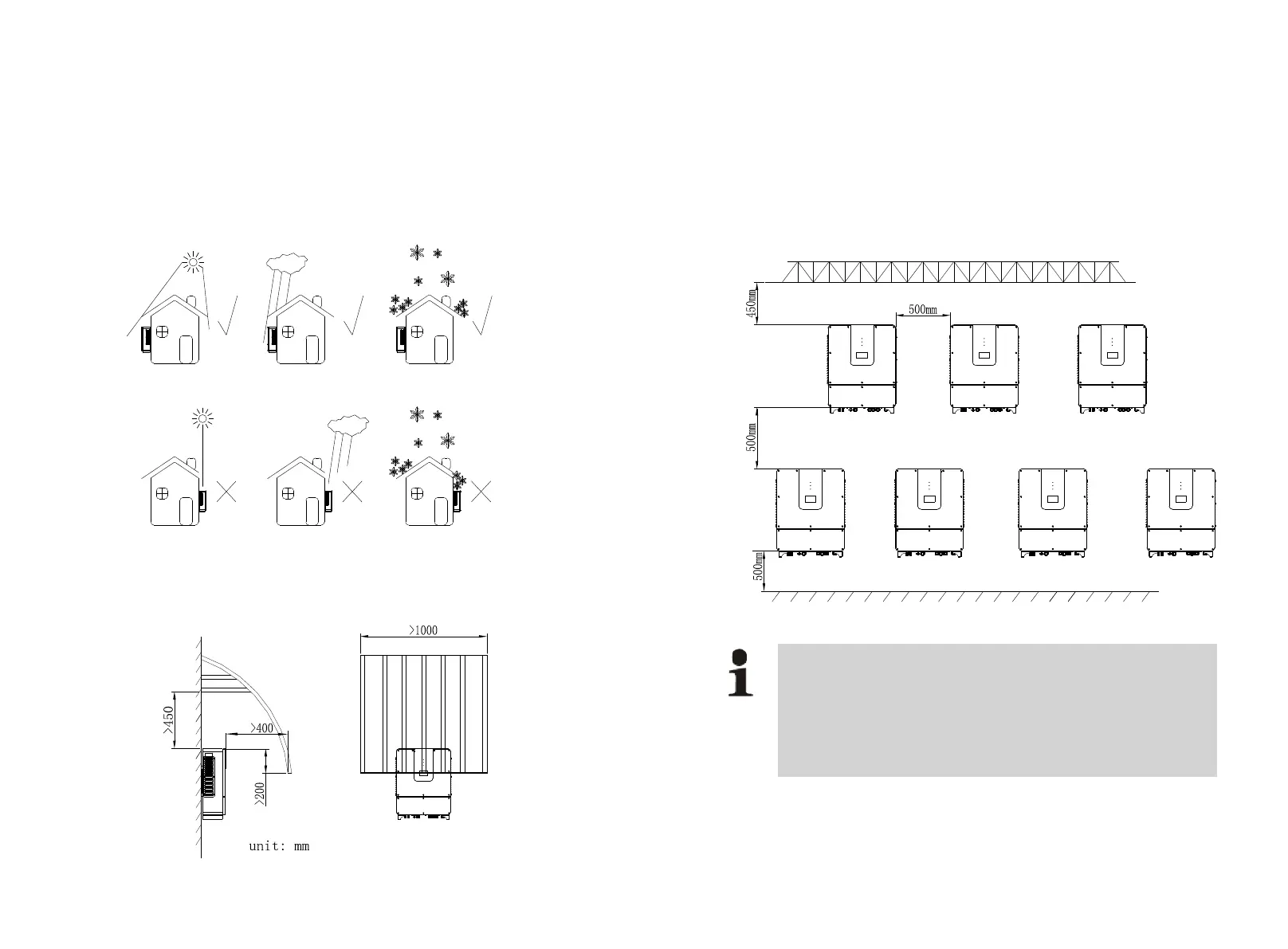 To avoid inverter life span decrease, it is recommended to install shading shield on