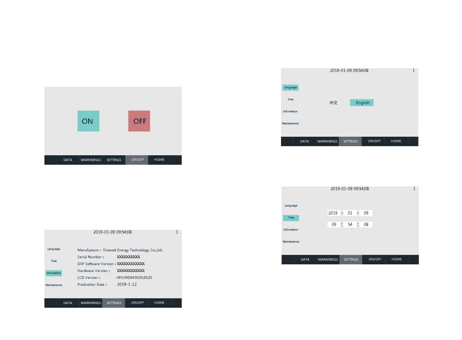 Device Information: This p a g e s h o ws the manufac t u r e r, i n v e r t e r serial