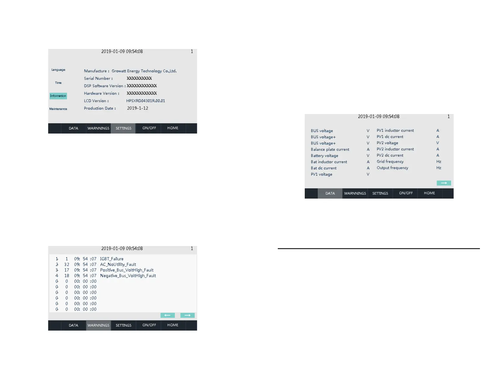 voltage, DC input current, chassis temperature and total power generation time, etc.