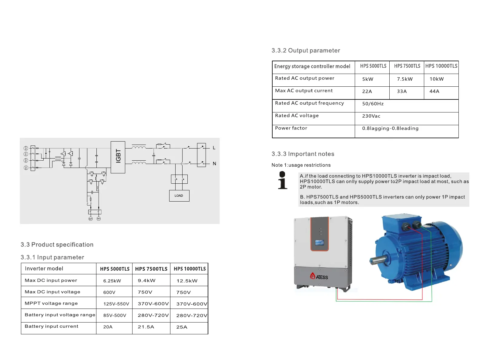 ATESS HPS5000TLS/HPS7500TLS/HPS10000TLS hybrid inverter is designed for
