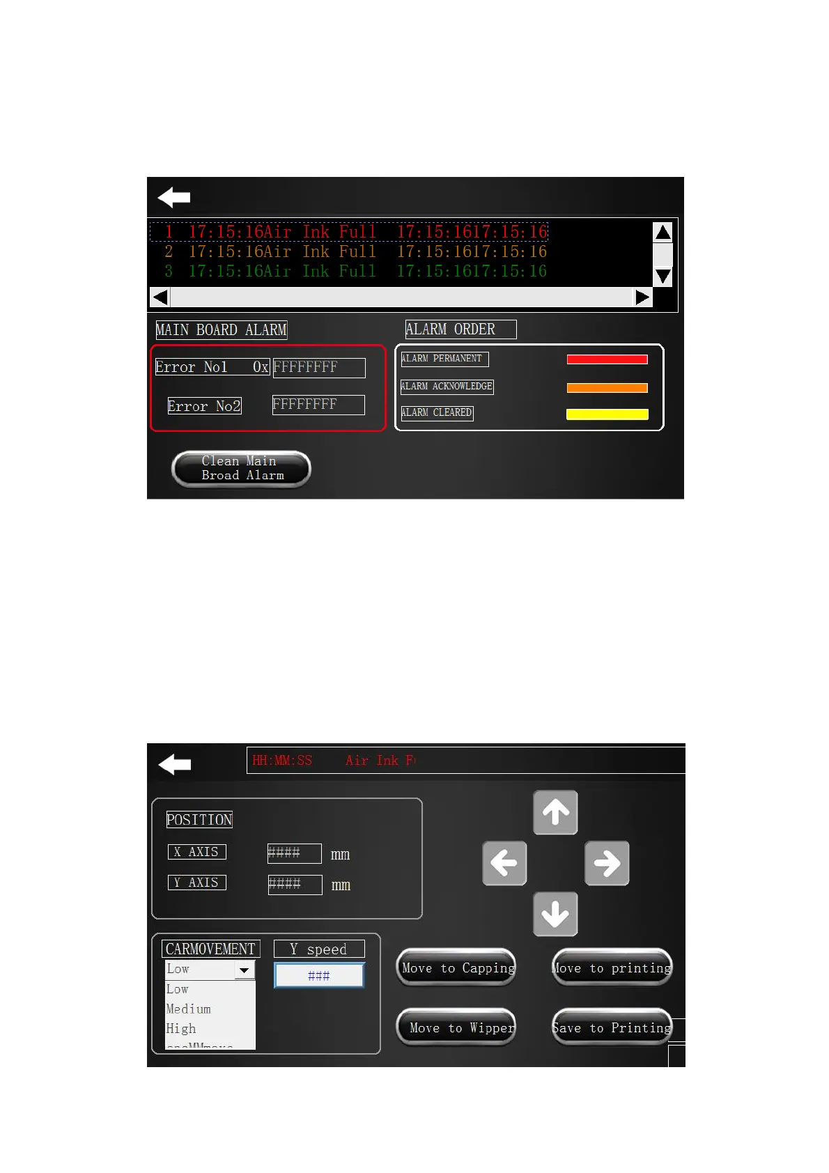 Clean Main Board Alarmclick it to relieve main board alarm.
