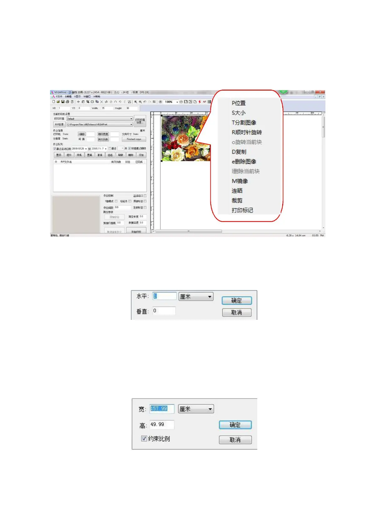 ③ Rotate clockwise: Rotating the image 90 degrees is useful for saving material and avoiding image tiling.