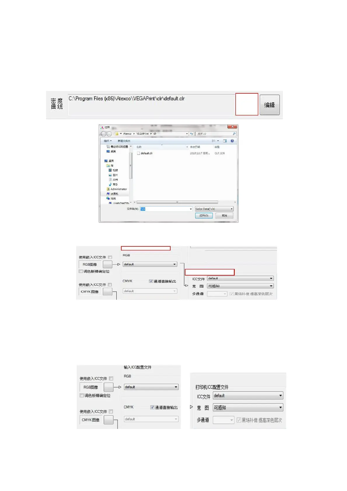 ①When there is no ICC curve, no need to check the embedded ICC file, enter RGB in the ICC configuration file