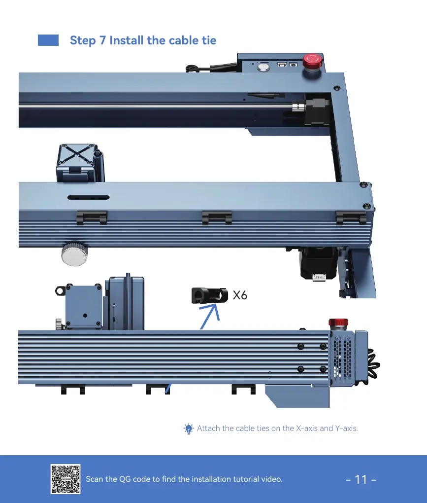 Attach the cable ties on the X-axis and Y-axis.