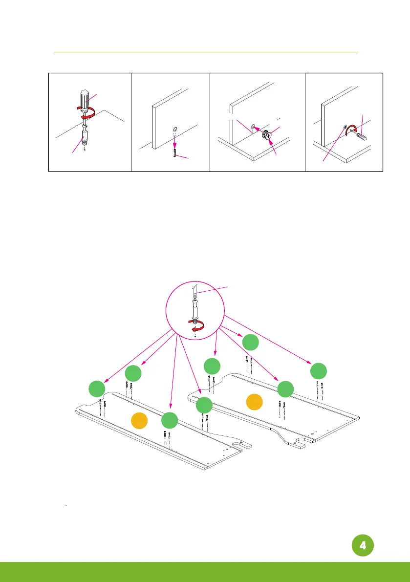 Etape C. Insérez les verrous à came à l’intérieur des insertions correspondantes.