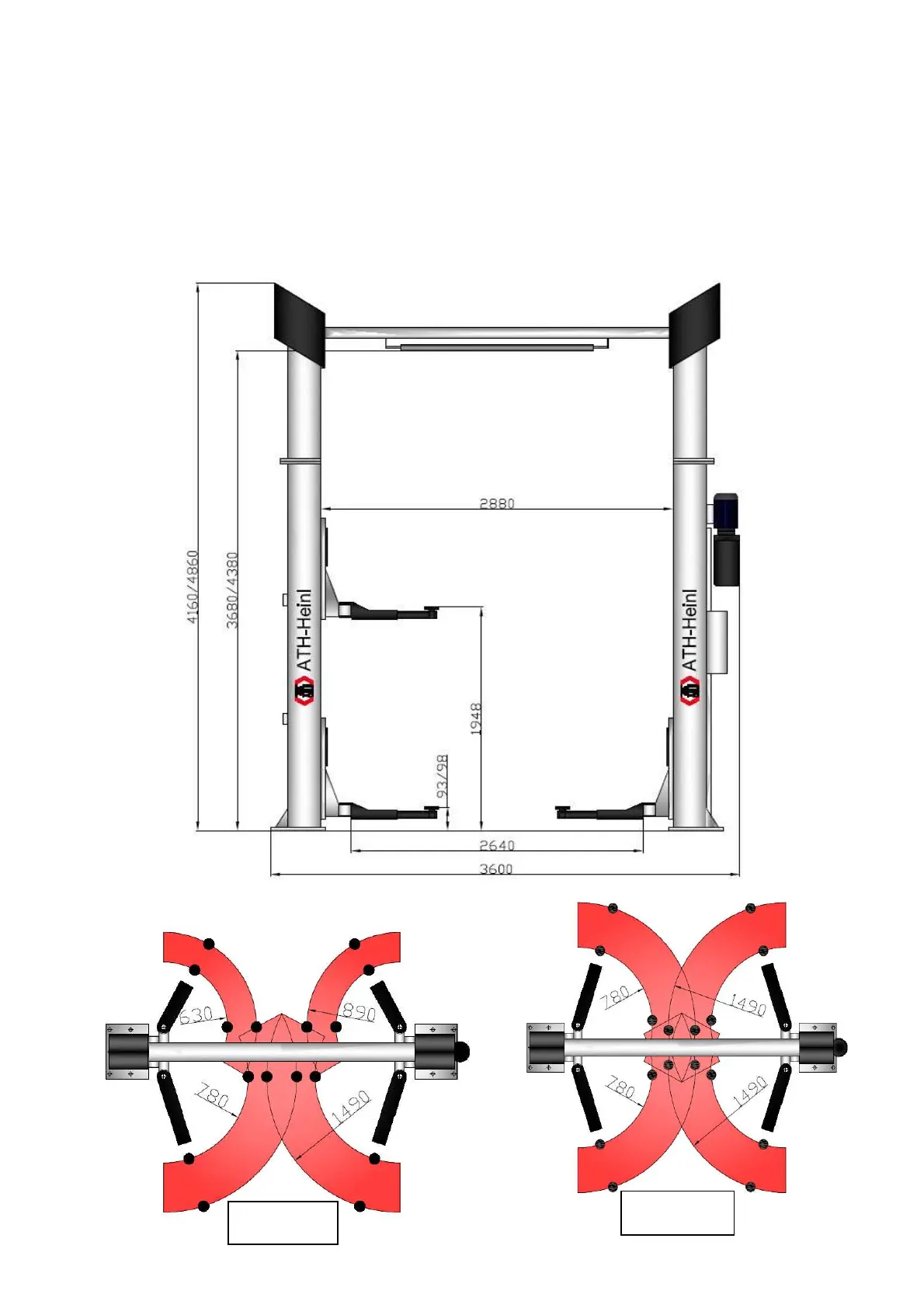 2.3 Bemaßung Hebebühne (2.32HL2 + 2.42HL2 / 380+450)
