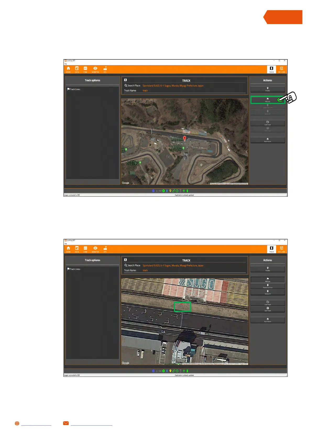 Move the map near the finish line (if necessary) and press it to position the first finish line