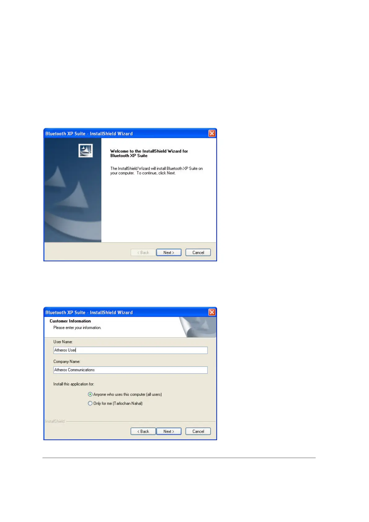 InstallShield Wizard for Bluetooth Suite screen (see Figure 2-1) is displayed.
