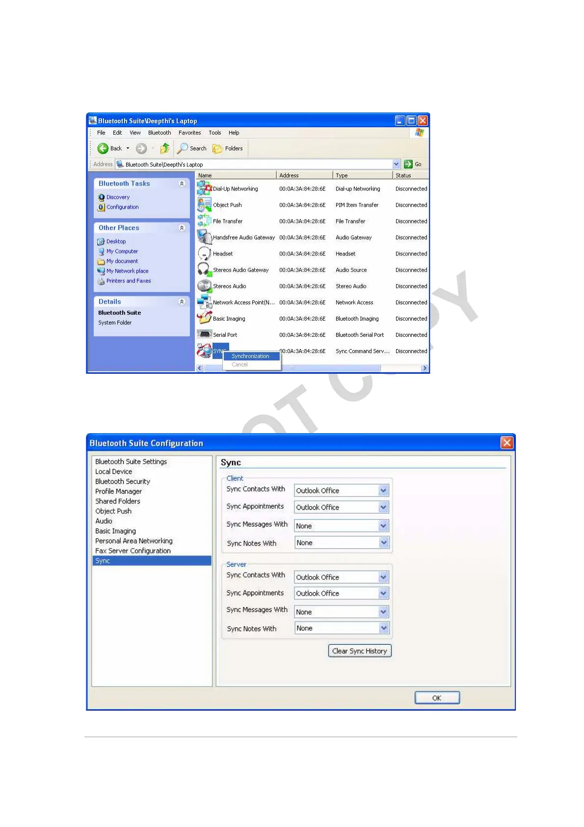 Atheros AR5B225 - Bluetooth Suite Configuration; Sync Settings